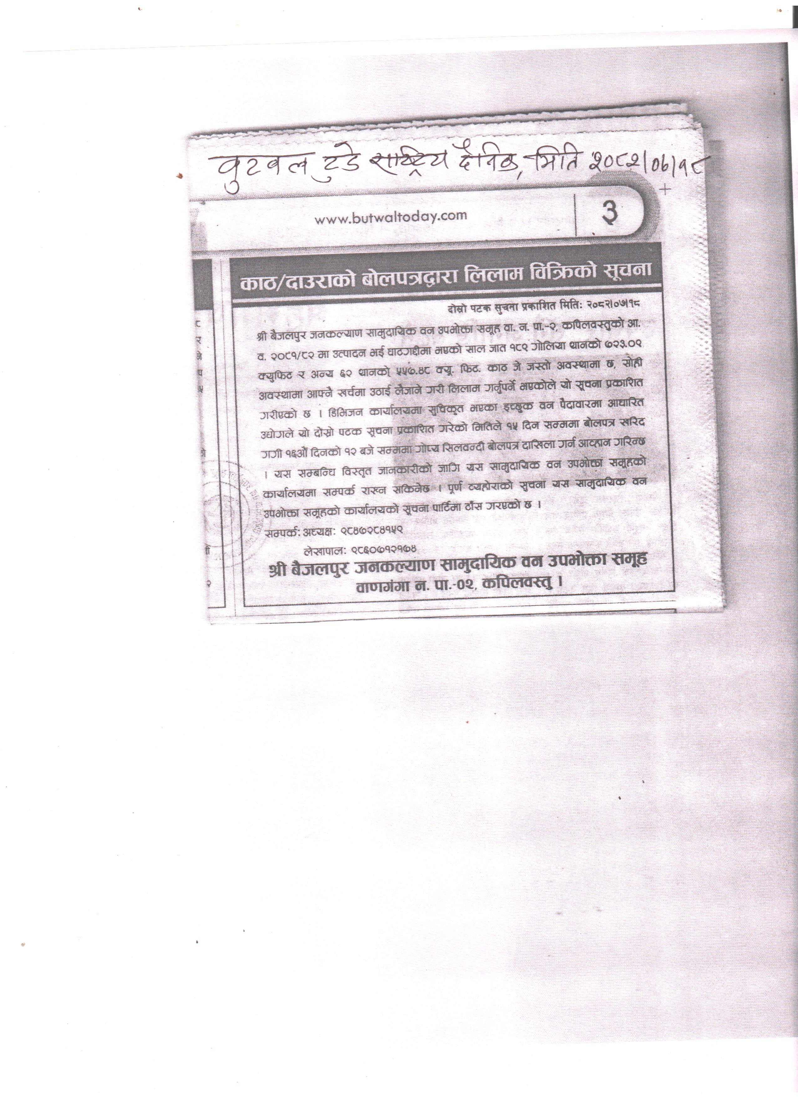 बैजलपूर जनकल्याण सामुदायिक वन उपभोक्ता समूह , वाणगंगा २ कपिलवस्तुको काठ दाउरा लिलाम बिक्रीको सूचना